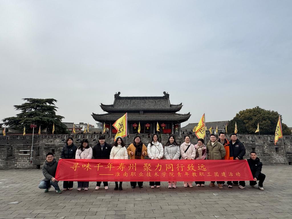 为丰富青年教职工业余文化生活,进一步增强凝聚力与协同精神,1月10日,学校工会组织青年教职工赴寿县古城开展“寻味千年寿州 聚力同行致远”团建活动。